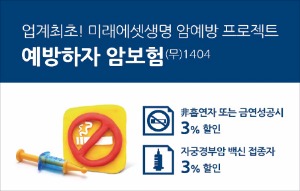 업계 최초로 암 예방 활동에 힘쓴 고객에게 할인 혜택을 제공하는 상품이다. 우선 암 발병의 가장 큰 원인인 흡연 및 예방백신 미접종 방지를 위해 비흡연자는 3%, 자궁경부암 예방백신을 접종한 여성에게는 3% 할인 혜택을 제공한다.비흡연자이면서 자궁경부암 백신 접종을 받은 사람은 자동이체 할인 1%까지 추가해 총 7%를 할인받을 수 있다. 회사 측은 “예방백신을 접종하지 않은 사람보다 납입기간에 총 100만원의 보험료를 덜 내게 된다”고 설명했다. 이 상품은 또 치료비가 많이 드는 고액암의 분류를 백혈병, 뇌암, 골수암뿐만 아니라 췌장암, 식도암, 담낭암, 담도암 등 7개 암으로 분류해 최대 1억원까지 폭넓게 보장받을 수 있도록 했다.