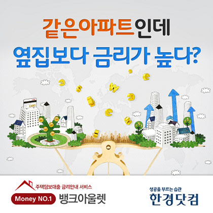 한경닷컴 뱅크 아울렛(hk-bank.co.kr 1600-2599) 관계자는 “은행별 주택아파트담보 대출금리비교 중요성이 높아지고 있다면서, 본격적으로 금리가 인상되는 시점이 오면 막대한 채무는 심각한 위협이 될 수 있다."고 우려했다.