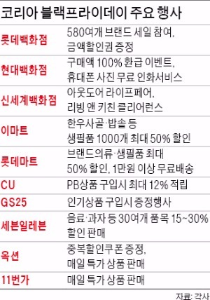 백화점과 대형마트, 편의점 등 유통업계는 내달 1일부터 사상 최대의 할인 행사인 '한국판 블랙프라이데이'를 시작한다. '한국판 블랙프라이데이'는 미국 유통가의 최대 할인행사인 '블랙프라이데이'를 본떠 올해 처음 열리는 행사다.