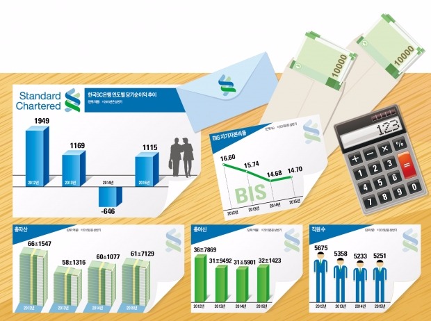 지난 2분기 한국스탠다드차타드(SC)은행의 당기순이익은 790억원에 불과했다. 같은 기간 2000억~4000억원 가량인 주요 시중은행의 20~30% 수준이다. 점포 수도 250여개로 1000여개 안팎인 ‘빅4 은행’(신한, 국민, 우리, KEB하나)의 4분의 1 정도다.
