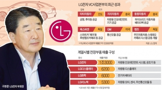LG전자는 2013년 자동차 설계회사인 V-ENS를 인수한 뒤 내부 차량 부품 관련 조직을 통합, VC 사업본부를 신설한 바 있다. 이어 자동차 부품 전용 연구·개발(R&D) 단지를 인천 청라지구에 완공했다.