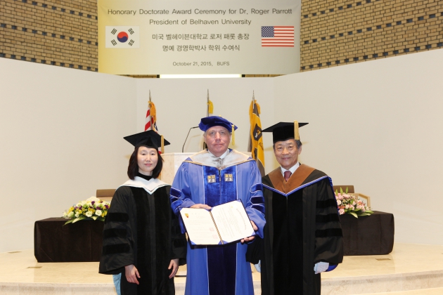 미국에서 27년의 총장 경력을 가지고 있는 벨헤이븐대학교의 로저 패롯(Roger Parrott)총장(61)이 부산외국어대학교에서 명예경영학 박사학위를 받았다.