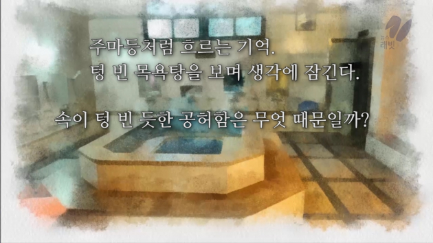 주마등처럼 흐르는 기억. 텅 빈 목욕탕을 보며 생각에 잠긴다.
