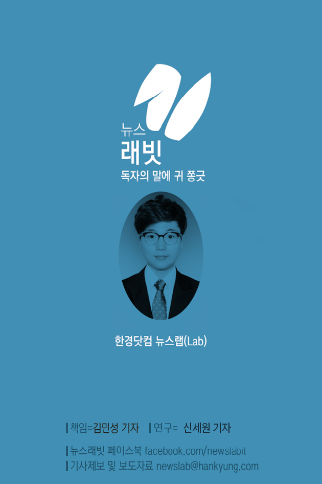 '뉴스래빗'은 한경닷컴 뉴스랩(Newslab)이 만드는 새로운 뉴스입니다. 토끼(래빗)처럼 독자를 향해 귀 쫑긋 세우겠습니다.