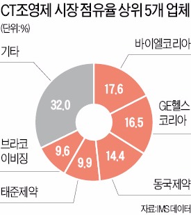 하지만 복지부가 내년부터 최소단위가 아닌 생산규격 대상으로 저가의약품 지정 대상을 전환하면서 CT조영제는 최소 30%에서 최대 50%가량 약값이 떨어진다. 조영제는 CT 촬영 시 혈관이나 조직이 잘 보이도록 해주는 액체 약물이다. 2000년 초반까지 전량 수입에 프맨像립?동국제약 태준제약 이연제약 등 국내 9개 업체가 뛰어들어 국내 업체의 점유율이 40%까지 늘었다.