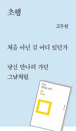 1부에 실린 첫시는 선시를 뛰어넘는 절제와 압축미의 표상이다. ‘처음 아닌 길 어디 獵彭?/ 당신 만나러 가던/ 그날처럼.’(‘초행’ 전문) 3행 21자로 노래한 사랑시의 절창. 사랑은 누구에게나 가슴 설레고 떨리는 첫길이자, 늘 새롭게 떠나는 초행길이다.
