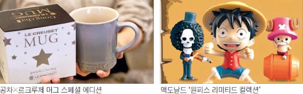 을 빼면 약 1만원에 머그잔을 판매한 셈이다. 르크루제 머그잔 가격이 3만원을 넘는 것을 고려하면 70%가량 할인한 것이다.맥도날드는 ‘키덜트(아이 같은 감성과 취향을 지닌 어른)족’을 공략한 캐릭터 상품과의 협업을 꾸준히 진행하고 있다. 지난 5일에는 빅맥세트와 만화 원피스 피규어 9종을 함께 판매하는 ‘원피스 리미티드 에디션’을 출시해 큰 인기를 끌었다. 서울 등 수도권 대부분 매장에서는 출시 하루 만에 모두 팔렸고 6일부터 시작한 개별 판매에서도 일부 품목이 이미 품절됐다.