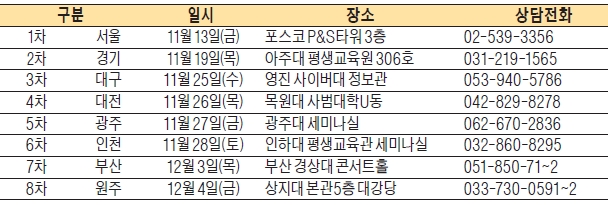 구체적인 일정과 상담전화는 다음과 같고, 사전 참가신청을 받는다.