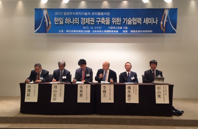 한일산업기술협력재단(한일재단)과 일본기술사회 국제위원회가 개최한 '한⋅일 하나의 경제권 구축을 위한 기술협력 세미나'가 10월21일 서울 더팔래스호텔에서 열렸다. 이번 세미나에서는 한일재단이 실시하는 '일본 우수퇴직기술자 유치 활용 사업'의 성과와 '한⋅일 기술협력' 전망이 논의됐다.