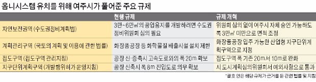 기업 유치를 위해 적극적으로 규제 개혁에 나선 여주시의 파격 행보가 주목받고 있다. 감사나 민원을 의식해 법적인 하자가 없음에도 인허가를 내주는 데 소극적인 대다수 지방자치단체와 대비된다. 여주시는 옴니시스템 계열사 유치 과정에서 공장 설립이 법령에 가로막히자 적극적으로 해결 방법을 찾아내 투자 유치에 성공했다.
