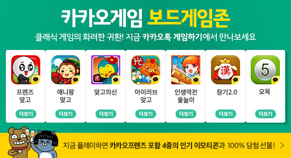 카카오는 1일 모바일 게임 플랫폼 카카오 게임하기에 '보드게임존'을 신설했다고 밝혔다.