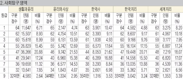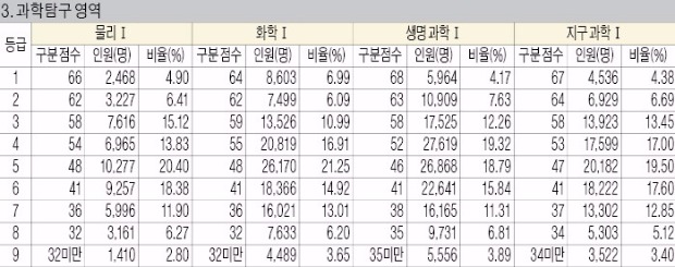 이영덕 대성학력개발연구소장은 “올해 생명과학Ⅰ영역의 만점자 비율이 0.04%에 그치는 등 의대를 지망하는 자연계 상위권 수험생들에게는 과학탐구가 가장 큰 변수가 될 것”이라고 진단했다.