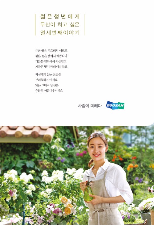 두산의 ‘사람이 미래다’ 광고 캠페인은 청년에게 보내는 응원 메시지로, 젊은이들의 공감과 지지를 얻는 좋은 기업 광고라는 평가를 받고 있다.