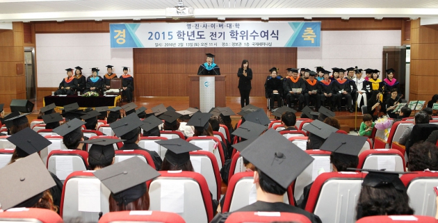 영진사이버대학(총장 최재영, www.ycc.ac.kr)은 지난 13일 정보관 국제세미나실에서 2015학년도 학위수여식을 개최하고 전문학사 1449명을 배출했다. 이날 졸업식에선 진정민(경영학과)씨가 전체수석을 차지해 재단 이사장상을 수상했다. 2002년 개교이후 올해까지 총 1만 2538명의 졸업생을 배출했다.