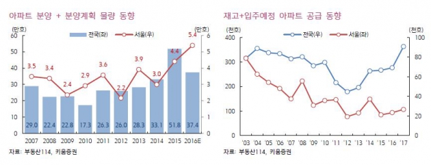 LG하우시스의 경우 창호공사, 벽산과 노루페인트는 마감공사 수혜주로 제시됐다. 2016년엔 그 어느 해보다 신규 분양 물량에 창호가 집중 투입되는 시기라고 라 연구원은 덧붙였다.