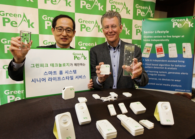 스마트 홈 및 사물인터넷(IoT) 애플리케이션용 저전압 RF 반도체분야 글로벌 선두기업인 그린피크 테크놀로지 최고 경영자 케이스 링크스가 내한했다. 26일 서울 중구 프레스센터에서 `스마트 홈 시스템`과 `시니어 라이프스타일 서비스`를 소개하고 있다. 링크스는 AT&T 근무 당시 와이파이 개발과 상용화를 담당하여 와이파이의 아버지로 불린다.