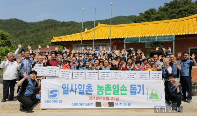 신동아건설은 2007년 7월 강원도 영월 덕상2리와 일사일촌 자매결연을 맺은 후 매년 2회씩 농번기 일손을 돕고 농한기에는 직거래장터를 열어 주고 있다. 2013년 11월에는 사단법인 농촌사랑범국민운동본부로부터 일사일촌 농촌 사회공헌 인증서를 받기도 했다.