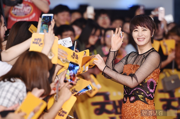 [ 최혁 기자 ] 배우 김혜수가 23일 오후 서울 영등포동 타임스퀘어 아트리움에서 열린 영화 '굿바이 싱글'(감독 김태곤, 제작 호두앤유엔터테인먼트, 영화사 람) 팬페스트 행사에 참석해 팬들과 인사를 나누고 있다.
