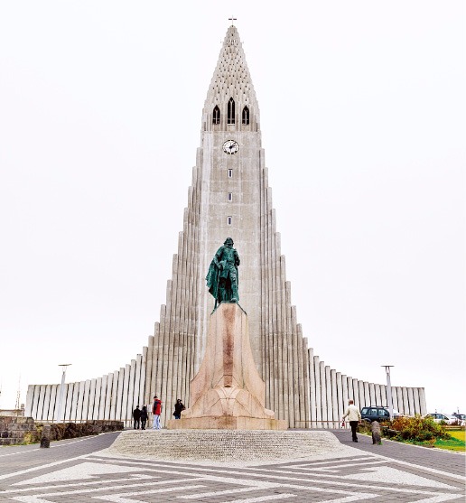 호수 옆 큰 도로에서 횡단보도를 건너면 레이캬비크에서 가장 매력적인 두 거리가 맞닿아 있다. 라우가베그루와 스콜라뷔르두스티구르다. 스타일리시한 카페들과 기념품 상점들이 빼곡하고 알록달록한 그라피티가 거리를 가득 메웠다. 스콜라뷔르두스티구르 거리 끝에는 도시의 상징인 ‘할그림스키르캬 루터교회’가 서 있다. 고층 건물이라곤 눈을 씻고도 찾아볼 수 없는 레이캬비크에서 약 78m에 육박하는 이 거대한 건축물은 단연 눈에 띈다. 양쪽에서부터 점진적으로 커지며 올라오는 돌기둥들은 꼭대기에서 십자가와 함께 만난다. 빼죽 솟아 있는 모양새가 마치 우주로 당장 날아갈 것만 같은 우주선 같기도 하고 거대한 파이프오르간 같기도 하다.