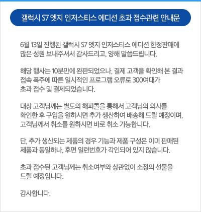 방금 전 삼성전자 서비스센터로부터 전화를 받았습니다. 어제(13일) 오전 10시부터 삼성전자 온라인 스토어에서 판매한 ‘갤럭시S7엣지 인저스티스 에디션(일명 배트맨 에디션)’이 초과 판매됐다는 얘기였습니다. 제가 어제 이 코너를 통해 ‘갤S7엣지 배트맨 에디션 구매 성공기’를 올려드렸는데 하루 만에 이런 일이 발생하니 당황스럽네요. ^^