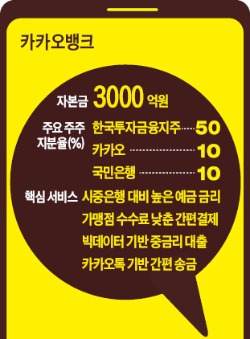 정부는 지난해 11월 카카오뱅크와 KT 우리은행 한화생명 등이 주요 주주로 참여하는 K뱅크(자본금 2500억원)를 신규 사업자로 선정했다.
