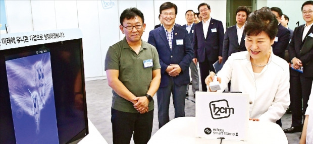 미래창조과학부와 KT가 공동 운영하는 경기창조경제혁신센터에 입주한 스타트업 원투씨엠(12CM)은 올 상반기 일본 통신사 KDDI, 쿠폰전문회사 기프티 등과 600만달러 규모의 수출 계약을 맺었다. 원투씨엠은 세계 최초로 스마트폰 스탬프 기반의 모바일 쿠폰·결제 서비스를 상용화했다. 스마트폰 스탬프는 소비자가 식당, 편의점, 카페 등에서 종이쿠폰에 도장을 찍듯이 스마트폰에 전자 도장을 받을 수 있게 하는 기술이다.수출 계약 이전에 이미 일본 시장에서 혁신적인 서비스로 주목 받아 지난 3월 일본 현지 편의점 체인인 패밀리마트와 시범 서비스를 하기도 했다. 프로모션 상품 구매 시 스탬프를 찍어주고, 할인·쿠폰을 받는 식이다. 한정균 원투씨엠 대표는 “영세사업자도 별도의 시스템 설치 없이 쉽게 모바일 쿠폰 서비스를 도입할 수 있는 게 가장 큰 매력”이라며 “중국 시장 진출을 목표로 연말까지 현지에 O2O(온·오프라인 연계) 법인을 설립할 계획”이라고 말했다.