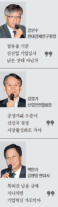 ▷전삼현 숭실대 법학과 교수=기업 사업재편이 화두다. 사업재편의 전제는 기업결합이다. 공정위가 기업결합을 심사할 때 중요하게 보는 게 ‘경쟁제한성’과 ‘효율성 증대 효과’ 두 가지다. ‘기업활력제고법’에 의해 사업재편 승인을 받은 기업들의 기업결합에 대해선 효율성이 입증됐다고 보고 심사를 안 하는 건 어떤가.