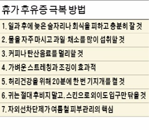 휴가 후유증은 휴가 기간에 맞춰진 생체 리듬이 직장 생활에 적응하는 과정에서 생기는 현상이다. 불볕더위, 열대야 등이 이어지는 날씨에는 몸이 지치고, 휴가 후유증이 깊어질 수 있다.