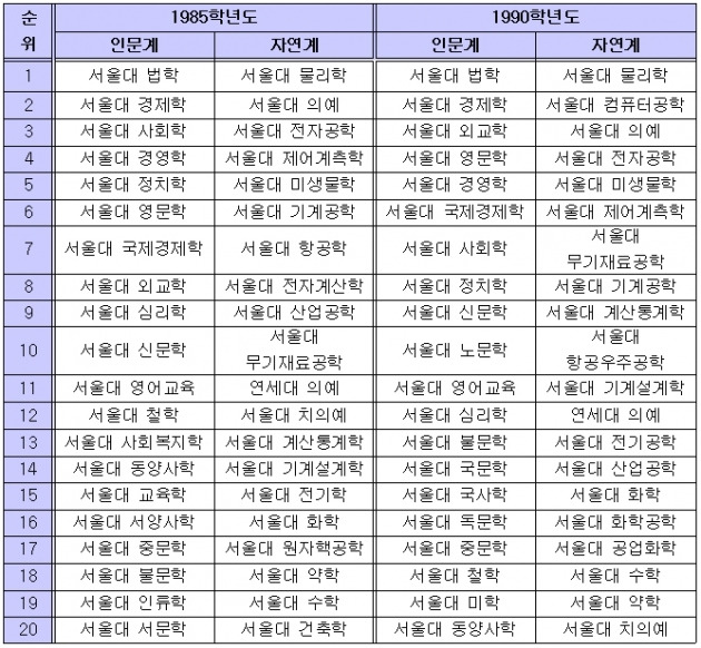 2005~2015년 "경영대 뜨고 한의대 지고"
