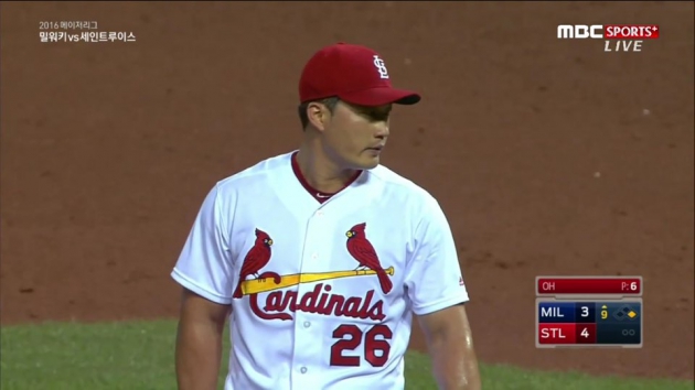 세인트루이스 카디널스 오승환은 10일(이하 한국시간) 미국 미주리주 세인트루이스의 부시 스타디움에서 열린 미국프로야구 메이저리그 밀워키 브루어스와 홈 경기에 4-3으로 앞선 9회초 등판, 1이닝을 1볼넷 2탈삼진 무실점으로 틀어막았다.