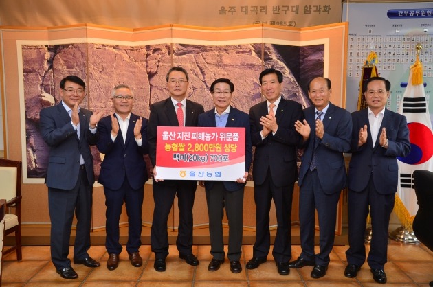 울산중앙회 울산지역본부(본부장 김재철)는 22일 이번 경주 지진으로 피해를 입은 울산지역 농가를 위해 써달라며 20kg짜리 쌀 700포대(2800만원 상당)를 울주군에 전달했다고 발표했다.