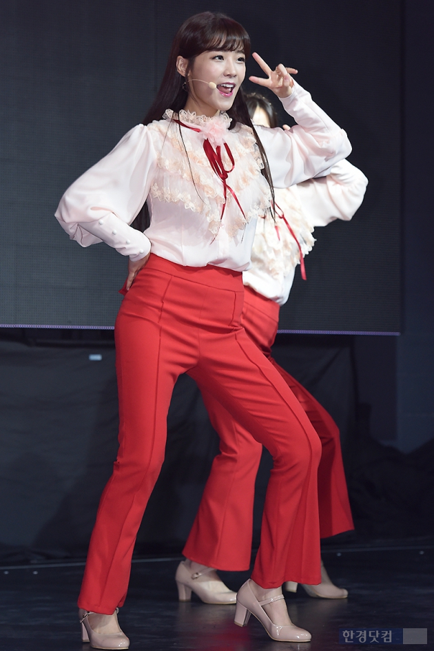 [ 변성현 기자 ] 그룹 크레용팝 소율이 23일 오후 서울 서교동 예스24 무브홀에서 열린 첫 번째 정규앨범 '에볼루션 팝 볼륨 원(Evolution pop_Vol.1)' 쇼케이스에 참석해 공연을 펼치고 있다.