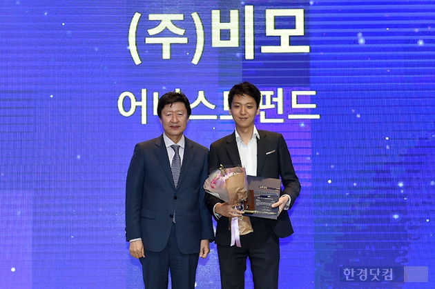 [ 변성현 기자 ] '제1회 한경핀테크대상 시상식'이 29일 오후 서울 여의도 글래드호텔에서 열렸다. 펀딩/대출 부문 최우수상을 차지한 ㈜비모 서상훈 대표(오른쪽)와 김기웅 한국경제신문사 사장이 포즈를 취하고 있다.