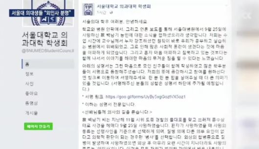한편 서울대 의과대생 102명도 이날 발표한 성명에서 "고인의 죽음은 명백히 외인사에 해당한다"며 "이것은 모두 저희가 법의학 강의에서 배운 내용"이라고 지적하고 병원 측에 오류를 고칠 것과 해명을 요청했다.