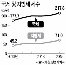 세율이 낮아 세수가 줄어든다면 또 모를 일이다. 세율을 인하했는데도 세수는 호황이다. 국세와 지방세를 합친 총세수는 10년 새 100조원 이상 급증했다. 지난해 譯?DP가 2010년 대비 23.1% 늘어나는 동안 세수는 27.6%나 증가했다. 세수가 부진하긴커녕 GDP보다 더 빨리 늘어 민간경제를 구축(驅逐)하는 상황이다. 올해도 수출·내수 경기가 다 나쁜데 세금은 20조원이 더 걷혔다. 세율을 낮춰도 시원치 않을 판에 정치인들은 “세율을 올리면 세수가 늘어날 것”이라는 바보들의 산수에서 벗어날 줄 모른다.