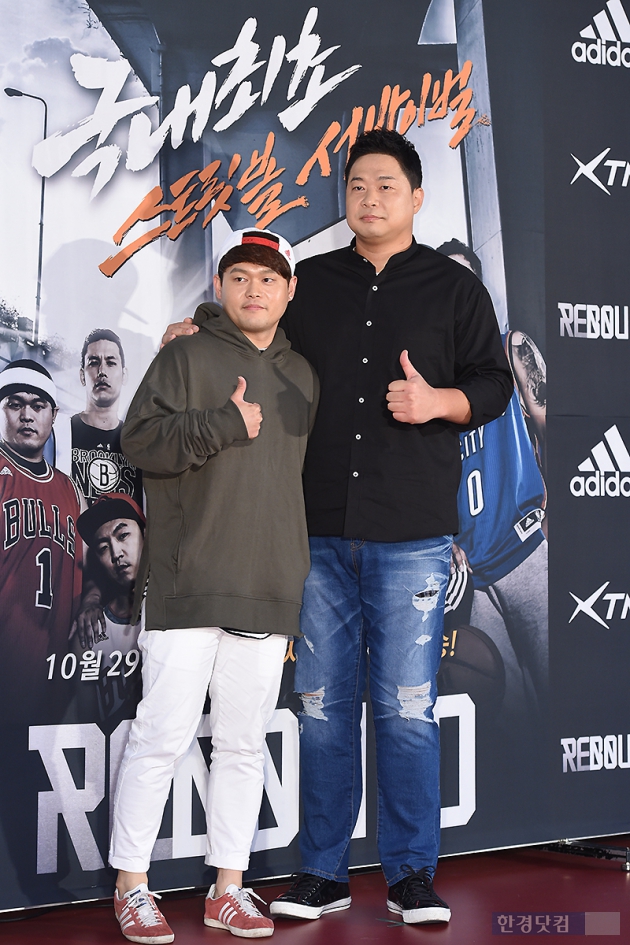 [ 변성현 기자 ] 전 농구선수 안희욱, 현주엽이 25일 오후 서울 장충동 장충체육관에서 열린 XTM 'REBOUND(리바운드)' 제작발표회에 참석해 포토타임을 갖고 있다.
