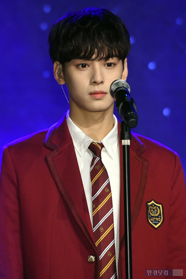 [ 최혁 기자 ] 그룹 아스트로 차은우가 9일 오후 서울 강남구 청담동 일지아트홀에서 열린 세 번째 미니 앨범 ‘어텀 스토리’ 발매기념 쇼케이스에 참석해 무대를 선보이고 있다.