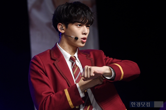 [ 최혁 기자 ] 그룹 아스트로 차은우가 9일 오후 서울 강남구 청담동 일지아트홀에서 열린 세 번째 미니 앨범 ‘어텀 스토리’ 발매기념 쇼케이스에 참석해 무대를 선보이고 있다.