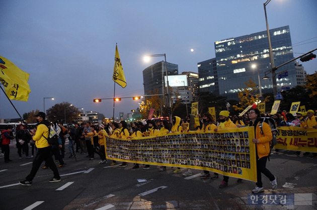 [ 최혁 기자 ] '최순실 국정농단' 사태 책임을 물어 박근혜 대통령 퇴진을 요구하는 민중총궐기 대회가 12일 열렸다. 대회에 참석한 세월호 유가족들이 청와대 방향으로 행진하고 있다. 최혁 한경닷컴 기자 chokob@hankyung.com기사제보 및 보도자료 newsinfo@hankyung.com ⓒ 한국경제 & hankyung.com, 무단전재 및 재배포 금지
