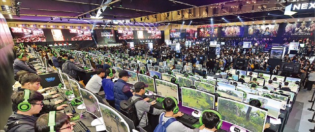 국내 모바일게임 시장의 절대 강자인 넷마블과 강력한 경쟁자로 부상한 넥슨이 국제게임전시회 ‘지스타 2016’에서 맞붙었다. 5년 만에 지스타에 복귀한 넷마블은 스마트폰 250대가량을 준비해 기대작 ‘리니지2: 레볼루션’을 시연하고 미공개 신작을 소개했다.넥슨은 역대 최대 규모인 400부스를 마련해 35종의 신작을 출품했다. 약 600명이 동시에 모바일게임을 체험할 수 있는 압도적 규모의 시연 공간을 꾸며 눈길을 끌었다.