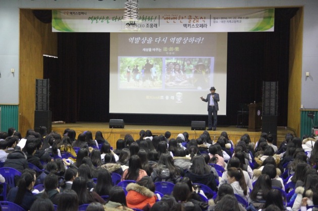 조 회장은 22일 대전 지족고등학교 학생 400여명을 대상으로 힐링 멘토 프로그램을 시작했다.