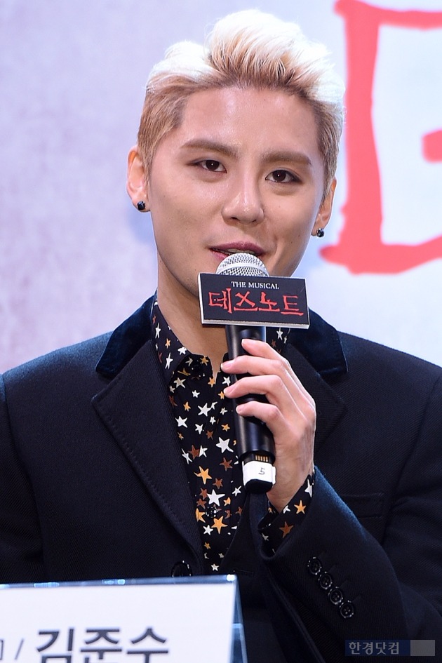 [ 김광순 기자 ] 가수 김준수가 19일 오후 서울 신천동 롯데 콘서트홀에서 열린 뮤지컬 '데스노트' 제작발표회에 참석해 군입대 전 마지막 작품으로 '데스노트'를 택한 이유를 밝혔다.