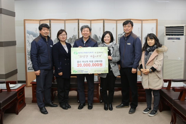 28일 김형섭 신고리제3건설소장은 고리스포츠센터 귀빈실에서 굿네이버스 울산경남본부(본부장 배광호) 관계자들을 만나 울산지역 중·고 입학 청소년 100여명이 입을 교복지원비 2000만원을 전달하고 희망의 새 출발을 기원했다.