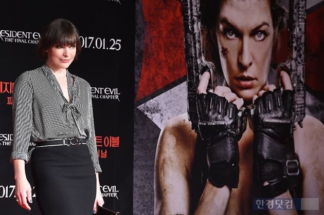 [ 변성현 기자 ] 할리우드 배우 밀라 요보비치가 13일 오전 서울 당주동 포시즌스호텔에서 열린 영화 '레지던트 이블: 파멸의 날'(감독 폴 앤더슨) 내한 기자회견에 참석해 포토타임을 갖고 있다.