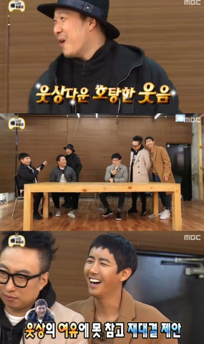 '무한도전' 멤버들이 다음에 또 붙어보자고 설욕전을 제안, 김종민이 여유있는 태도로 받아치자 '무한도전' 멤버들은 더욱 흥분하는 모습을 보여 웃음을 자아냈다.