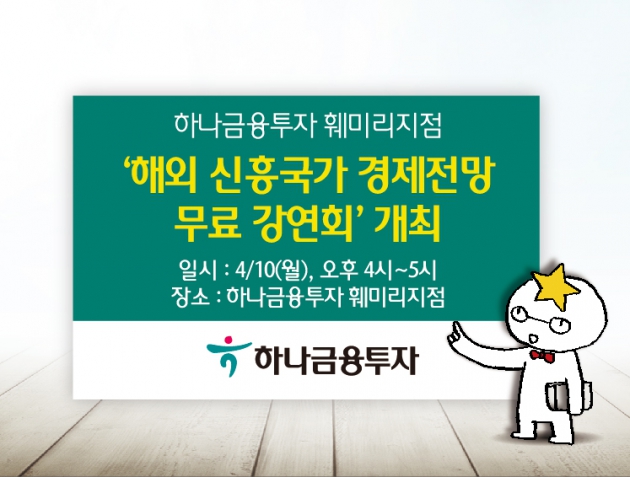 하나금융투자 훼미리지점은 오는 10일 서울 문정동 롯데마트 3층 훼미리지점에서 브라질, 러시아 등 해외 신흥국가들의 경제 동향 및 시장 전망에 대한 세미나를 개최한다.