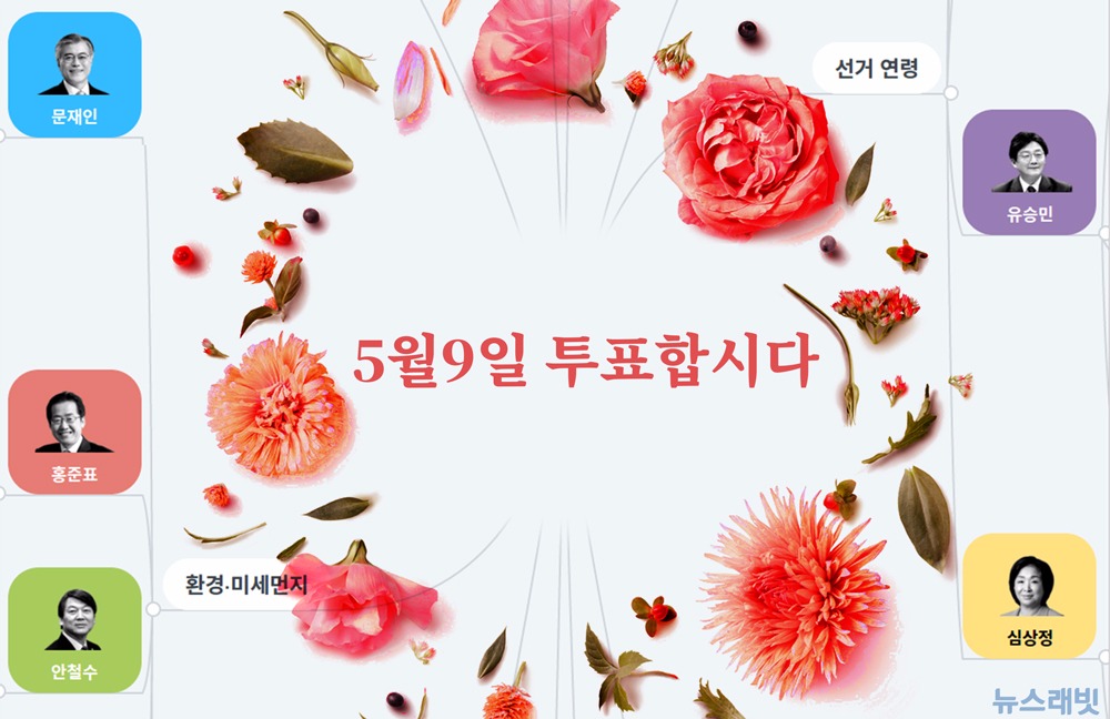 [편집자 주] '래빗 트렌드(trend)' 뉴스래빗만의 키워드 큐레이션(curation) 시리즈입니다. 뉴스 키워드 분석 결과에 데이터텔링 기법을 더해 최신 이슈를 정리합니다. 이번 주제는 19대 대통령 선거. 급박한 진행 속 말도 많고 탈도 많은 '장미 대선'. 이슈 따라가기 쉽지 않으실텐데요. 뉴스래빗 '래빗 트렌드'에서 대선 관련 이슈를 한눈에 정리합니다.