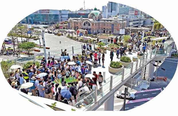 자동차만 다녔던 서울역 고가(高架)도로가 사람들이 걸어서 건너는 고가 공원으로 변신했다. 공식 명칭은 ‘서울로 7017’이다. 고가도로가 준공된 1970년의 70과 공원과 연결되는 주변 보행로 개수인 17을 조합해 만든 이름이다. 지난 20일 개장한 이 공원은 청계천과 함께 서울의 새 명물로 자리잡을 전망이다. 공원 다리를 이용하면 남대문~서울역~중림동~만리동을 쉽게 오갈 수 있다. 고가 공원은 박원순 서울시장이 2013년 ‘보행 친화도시 서울비전’을 발표하면서 구체화됐다. ‘서울로 7017’에는 다양한 종류의 나무가 심어져 있어 걷는 동안 색다른 느낌을 받는다. 공원 위에서 바라보는 서울역 일대의 야경도 볼 만하다. 공원을 찾는 나들이객이 늘어나면서 이 일대에 다양한 음식점과 카페가 생겨나고 있다. 도심에 활기를 불어넣고 있다는 평가다.