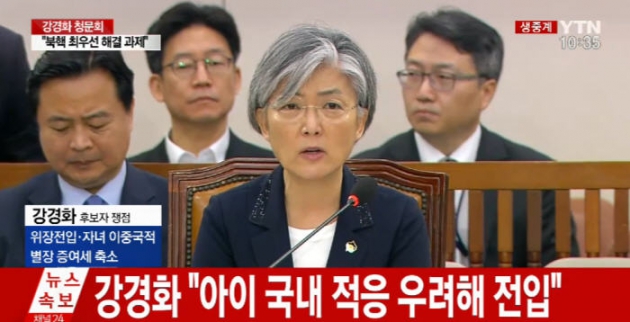 강 후보자는 이날 국회 인사청문회에서 박병석 더불어민주당 의원의 "거짓 해명으로 논란을 빚었다"는 지적에 "아이 국내 적응을 우려하는 엄마의 마음으로 전입시킨 것인데 남편이 생각없이 친척집이라고 답변했다"면서 이같이 말했다.