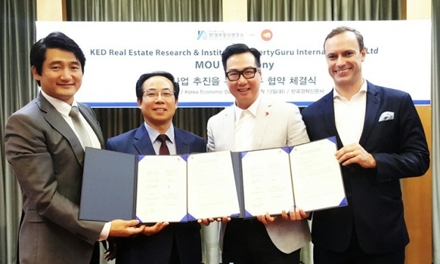 한경부동산연구소(소장 박영신)와 아시아 부동산 시상 운영 주최인 싱가포르 프라퍼티 구루 인터내셔널(루이스 응·비즈니스 총괄책임,테리 블랙번· 관리 총괄책임)은 지난 14일 한국경제신문사에서 '2017 프라퍼티 어워즈 그랜드 파이널 참여 및 향후 업무협력‘을 위한 MOU(양해각서)를 체결했다.